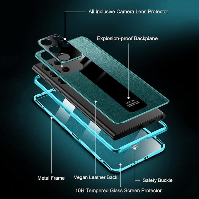- Premium Materials: Crafted with high-quality materials, including genuine leather accents and metal bumpers, for a luxurious look and durable protection.