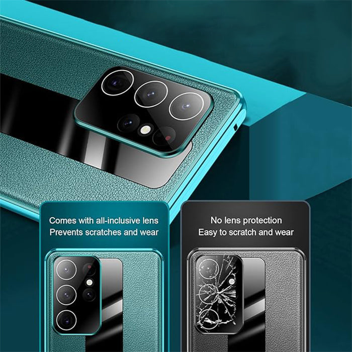 Experience the perfect blend of style and protection with our Magnetic Double-Sided Glass & Leather Case. This premium case features a sleek design with transparent tempered glass on both sides, allowing you to showcase the elegance of your device while keeping it safe from scratches and impacts. The magnetic adsorption technology ensures easy installation and a secure fit, while the genuine leather accents add a touch of luxury. Elevate your device protection game with this sophisticated and functional case.